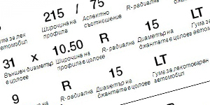 По-долу са дадени едни от най разпространените обозначения за размера на гумите, предназначени за използване при леките и лекотоварните автомобили.