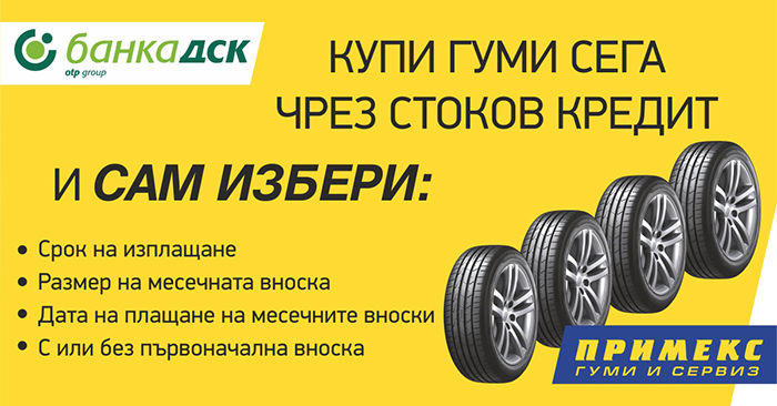 Купи гуми в Примекс чрез стоков кредит от Банка ДСК и САМ ИЗБЕРИ: