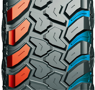 Дълбоките канали позволяват лесно изхвърляне на калта от протектора както при високи, така и при ниски скорости. Дизайнът предлага и по-добро сцепление при пътуване по скалисти или неравни пътища.
