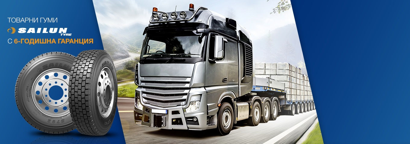 ПРИМЕКС официално представя марката SAILUN на българския пазар. Верни на цялостната си концепция за насоченост към бизнеса, оценка на потребностите на своите партньори и клиенти и старателен подбор на иновативни и качествени продукти, въведохме единствена по рода си удължена 6-годишна гаранция за товарни гуми SAILUN. Гаранцията покрива 100% от материалите и изработката на всички закупени товарни гуми SAILUN за период от 6 години и важи за експлоатационния живот на оригиналния протектор до границата на пълното му износване.