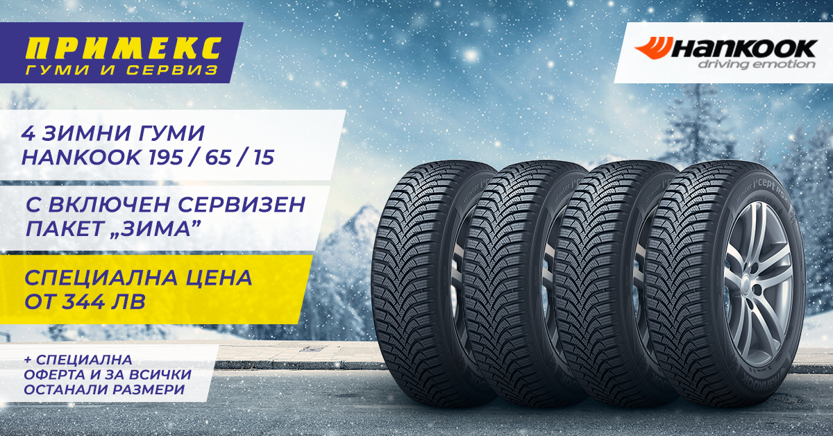Условия на кампанията: Ако закупите 4 (четири) броя зимни гуми Hankook, независимо от цолажа и предназначението, получавате подарък – Сервизен пакет „Зима“.